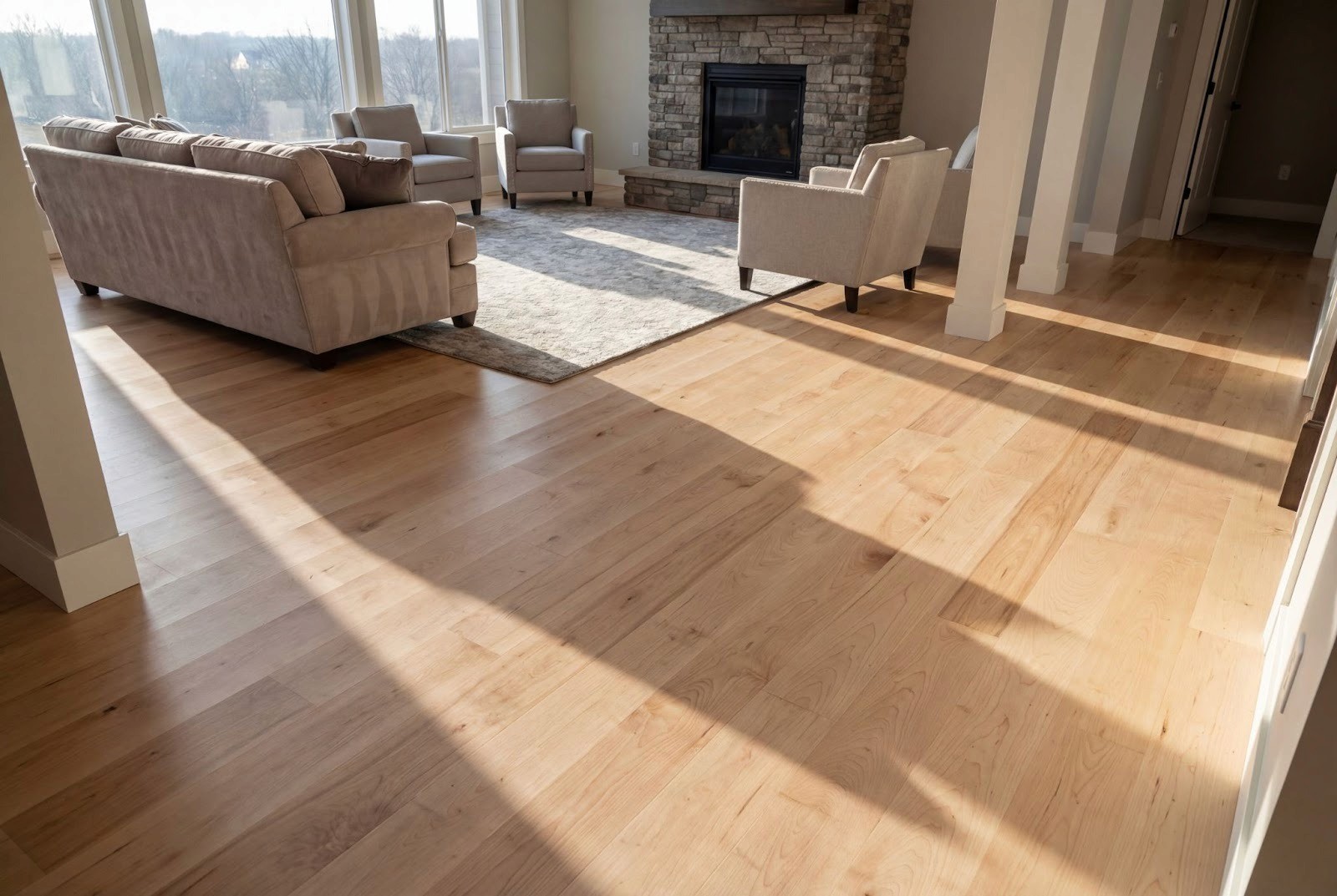Installing flooring throughout an entire home can lower material costs, but labor often increases due to doorways, transitions, and stairs. Whole-home projects usually cost 10–15% more in labor than a single large room.